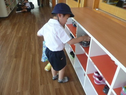 自主性のある子ども自分で考え判断し行動する子ども ![]() 自分で靴箱を見つけ、上靴と履き替える。 身辺自立の第一歩。 |