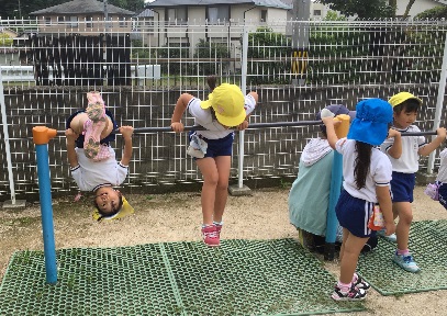 頑張る力とからだをもつ子どもいろいろな困苦に耐え得る身体と自信と意志を持った子ども ![]() 鉄棒に挑戦し、強い心と身体を育む。